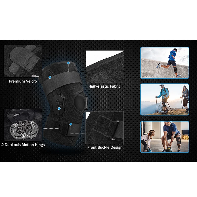 The high-strength hinges with locking dials on both sides will reduce flexion and extension movements, providing stability and protection to weak and injured knees. The locking dials can adjusted between -10° to 150°(exclusive patent beyond similar products). You can control the range of knee motion in this range according to the recovery of your knee.